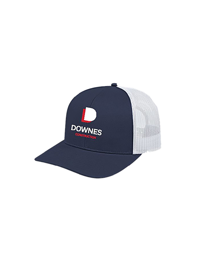 Medium profile 6 panel structured cap features a modified flat visor, poly/cotton blend with trucker mesh and adjustable snap back closure.