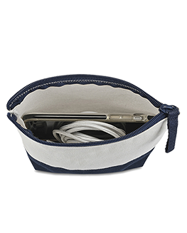 Made from durable canvas material, this pouch is designed to keep your essentials organized and within easy reach. Its secure zipper closure ensures everything stays in place, while the accent color base and matching zipper pulls add a stylish touch to your daily routine. Dimensions:7.9"L x 5.1"H x 0"W 65% Cotton, 35% Polyester, 12 oz