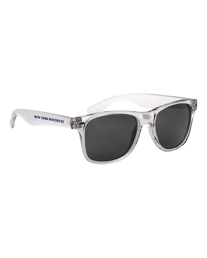 Clear sunglasses printed with New York Mavericks on the right temple.