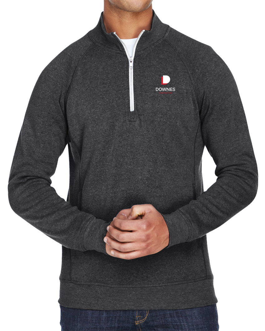 Elevate your causual wardrobe with this ultra-soft triblend fleece quarter zip pullover, designed for effortless comfort and style. Crafted from a premium blend of cotton, polyester and rayon, this pullover delivers the perfect balance of warmth, breathability, and durability. Featuring a 1/4 zip placket with off-white zipper tape, it offers easy layering and a refined touch. The ribbed collar, cuffs, and waist ensure a snug fit, while welt pockets add functionality without sacrificing sleekness. Logo embrodiered left chest.