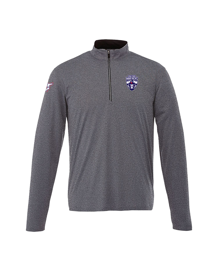 Men's performance 1/4 zip pullover with the crest logo on the left chest and the NY logo on the right sleeve.