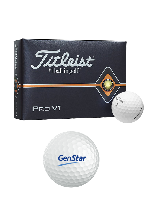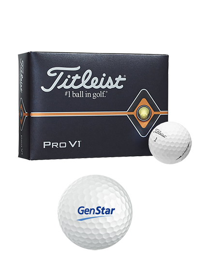Faster from core to cover, the new Titleist Pro V1 golf balls have been designed to leave the clubface with more ball speed and lower long game spin for more distance while providing the best short game control to help golfers shoot lower scores. GenStar logo printed on each ball.