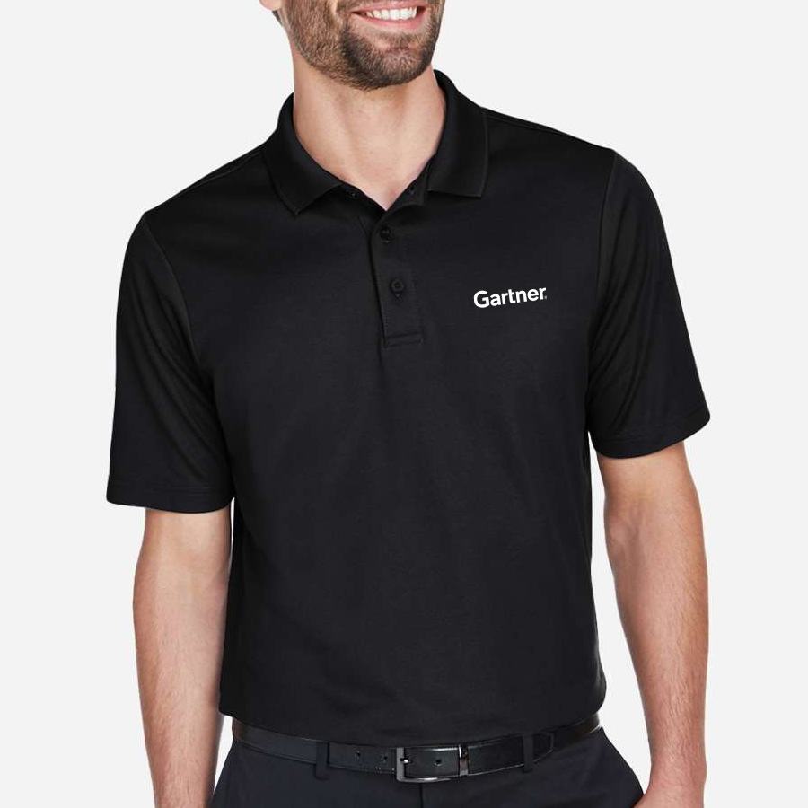 A men’s polo shirt with a 100% polyester face plaited to a 60/40 polyester/cotton back. This mesh pique knit shirt has a moisture wicking finish and a soft as cotton blend on the inside with UV protection. Features a three-button placket, dyed to match buttons and a matching flat knit collar. Embroidered on the left chest with Gartner.