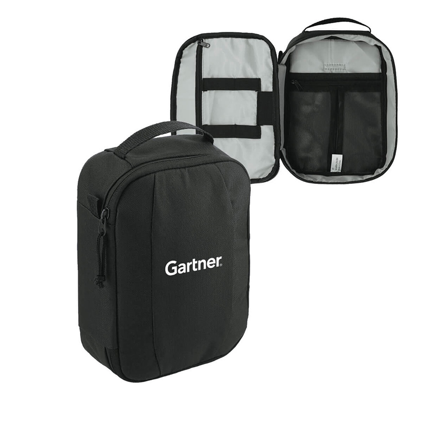 Handy tech organizer for organizing and transporting power banks, earbuds, cords and accessories. The bag has elastic loops, zippered pockets, a slip pocket with cord passthrough to store your power bank and charge your device. The best part of me is made from post-consumer plastic bottles and food containers.