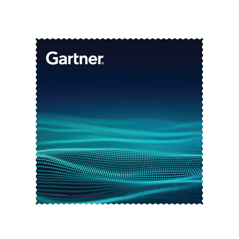 A 6" x 6" microfiber cleaning cloth packaged in a clear vinyl pouch. This soft, scratch-free microfiber fabric is made from 100% polyester and printed on one side with Gartner.