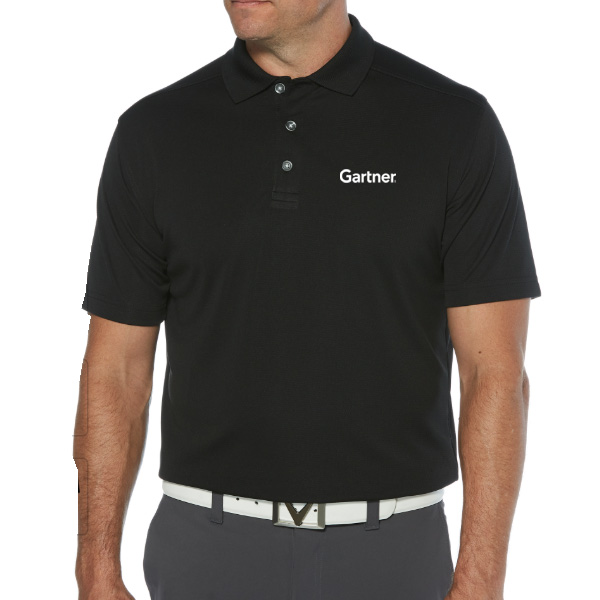 A men’s Callaway® Core Performance Polo shirt with a distinctive pattern, moisture wicking fabric, 3 button placket, and the Callaway® logo on the back neck. Available in blue or black with the Gartner logo embroidered on the left chest in white.