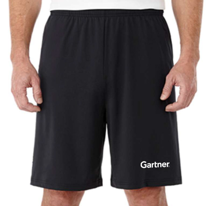 Men’s moisture management tech shorts with the Gartner logo printed on the left leg in white. Made from 100% micro polyester interlock knit, the shorts have a wicking finish and an elasticized, drawstring waistband which makes them easily adjustable and comfortable to wear all day. The shorts have an easy care, wash and wear, snag resistant fabric.