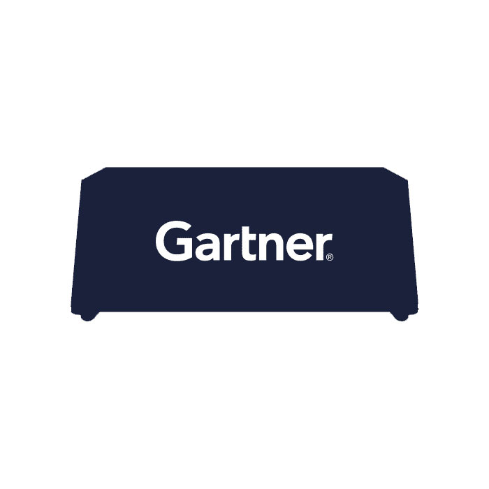 A trade show must! This navy blue polyester poplin table throw has draped corners, a clear sewn edge and covers all four sides of a 6' table. Printed on the front with the Gartner logo.