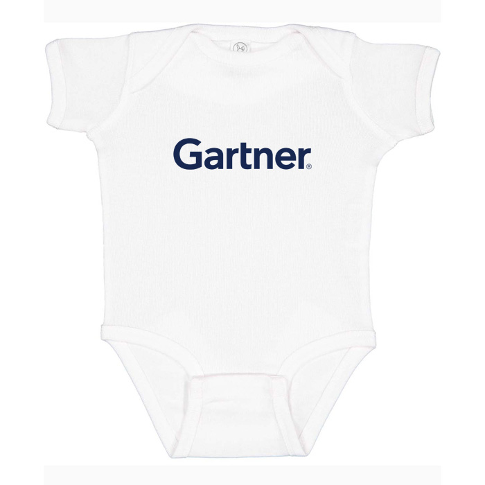 A 100% combed ringspun cotton, 1 x 1 baby rib, infant onesie with stitched seams, three-snap closure and side seam construction. Printed on the front with Gartner.