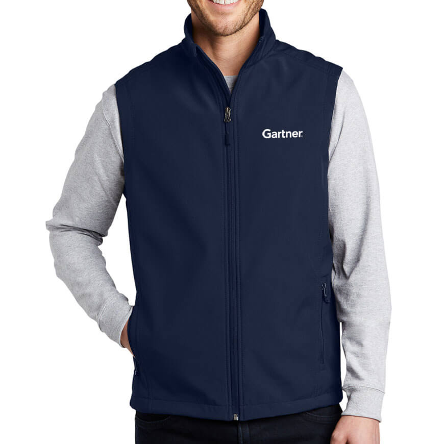 Keep your core warm and protected from the elements in this versatile vest that's easy on the budget. The 100% polyester woven shell is bonded to a water-resistant film insert and a 100% polyester microfleece lining makes this vest waterproof and windproof. There are two zippered pockets on the front and a zip-through cadet collar with chin guard, plus all zips are reverse coil for a smooth finish. Each vest has Gartner embroidered on the chest in white.