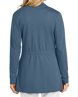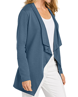 This crowd-pleasing cardigan, with its subtle slub texture, offers a carefree layering option for the office or any casual setting. 60/40 COTTON/POLYESTER, Open front, shawl collar with waterfall lapels, side seam pockets, elastic at waist for subtle shaping,