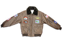 Looks like the real thing. Leather-look jacket in Brown has Multiple patches, zippered arm pocket and plush pile collar.