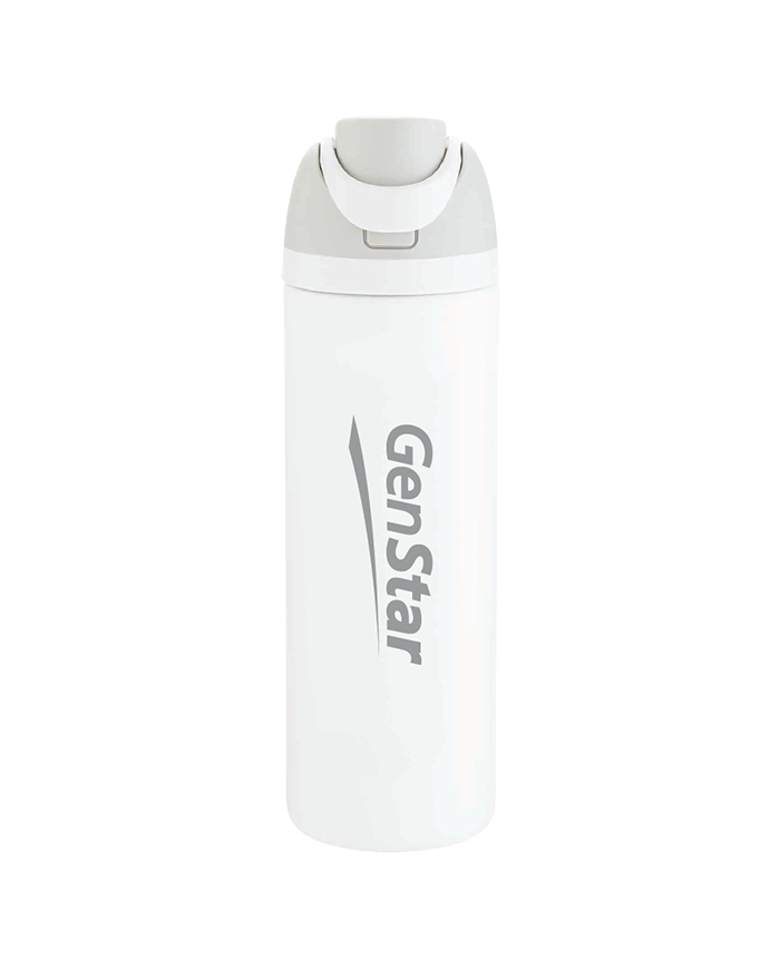 The Owala FreeSip 24 oz thermal bottle delivers flexible, on-the-go hydration. Built from durable 18/8 stainless steel with double wall construction and copper vacuum insulation, it keeps cold beverages chilled for hours. It features a dual-purpose threaded lid with a push-button locking mechanism, offering the option to sip through the built-in straw or tilt back to drink through the wide-mouth opening. Finished with a durable powder coated exterior for a secure, stylish grip.