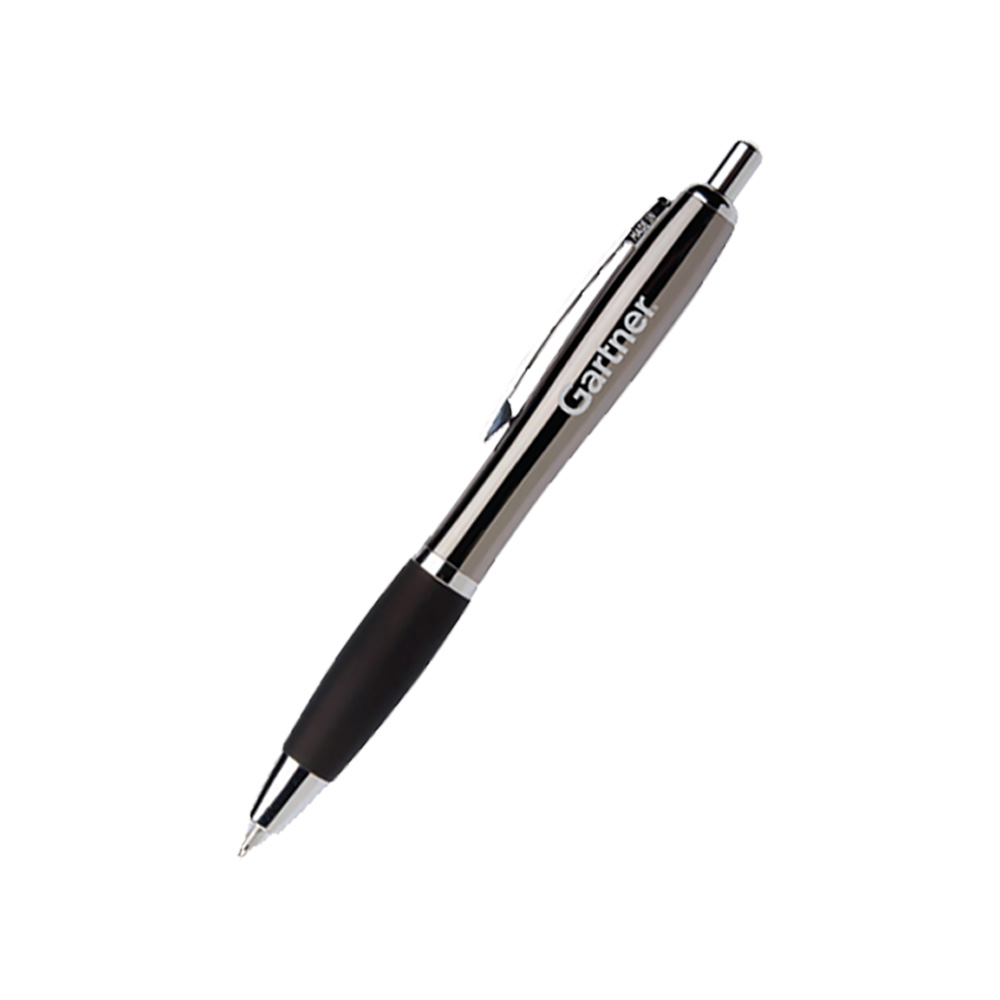 This executive metal pen converts to an LED flashlight for easy writing in darkened spaces. With a comfortable rubber grip, this pen is great for use while traveling in cars, planes and trains! Engraved on the barrel with the Gartner logo.