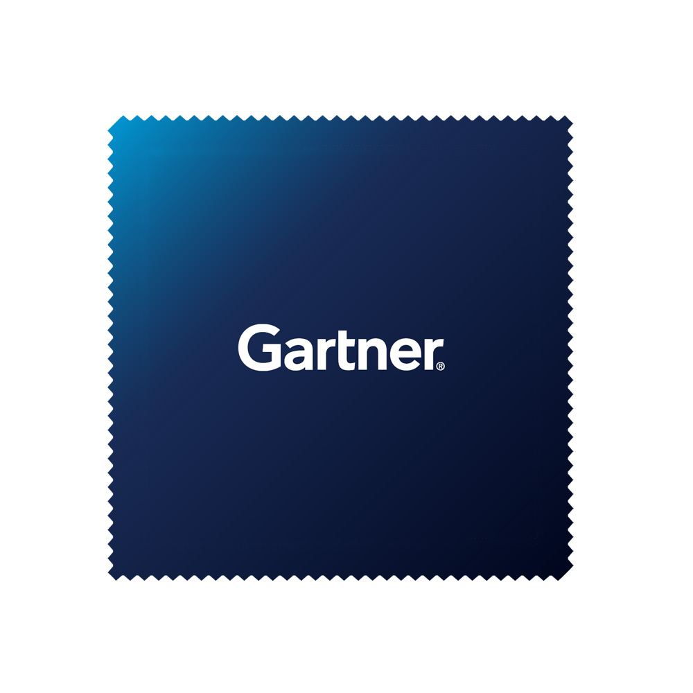 An 8" x 8" microfiber mousepad with a gel grip backing and the Gartner logo printed on one side. Packaged in a mylar pouch.