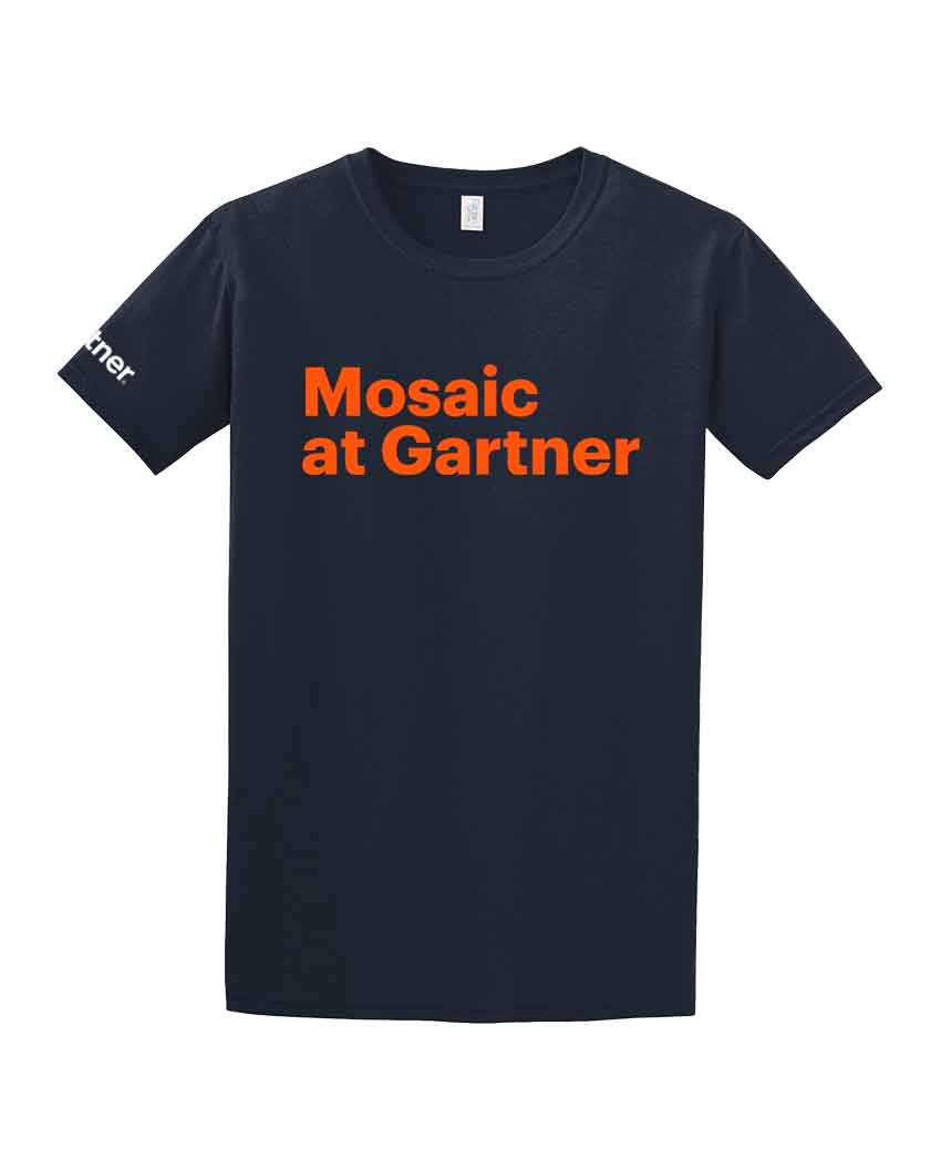 An adult soft-style T-shirt with ERG logo printed on the full front and the Gartner logo on the right sleeve.