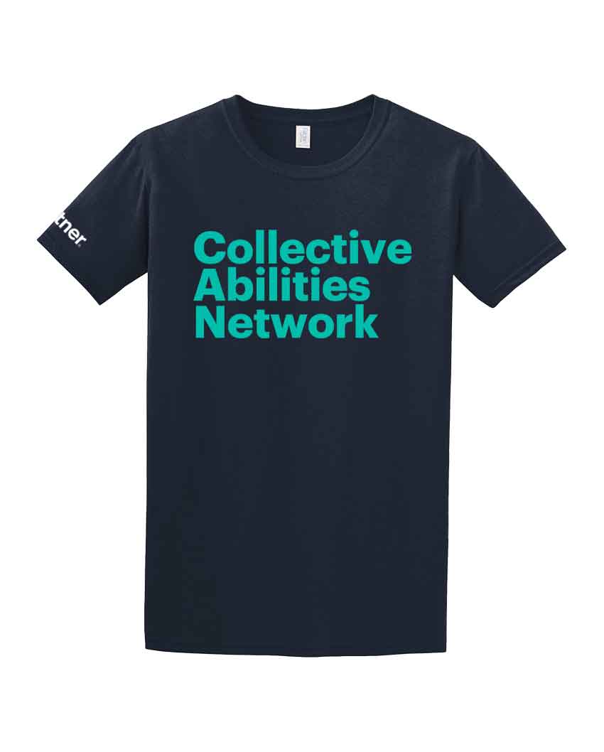 An adult soft-style T-shirt with ERG logo printed on the full front and the Gartner logo on the right sleeve.