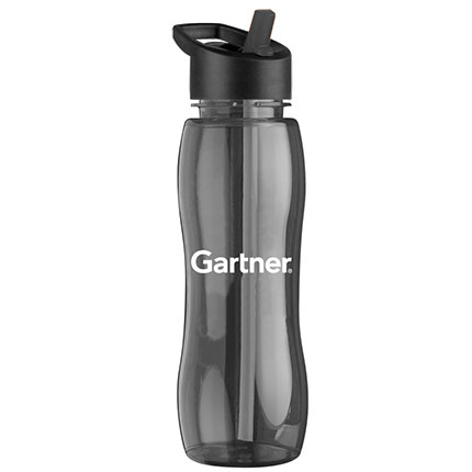 This slim-grip water bottle has a flip-straw lid and contoured shape for easy handling. Made in the USA, the bottle is printed with the Gartner logo in white, and is dishwasher-safe and BPA-free. Bottle color is transparent smoke.