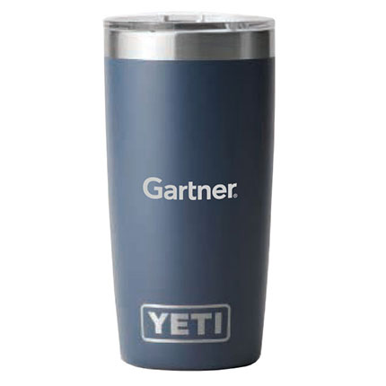 This 20 oz. navy blue YETI Rambler Tumbler is made from durable stainless steel with double wall vacuum insulation to keep your beverage hot or cold. The MagSlider lid adds an additional barrier of protection for keeping drinks contained and preventing heat or cold from escaping. Engraved with the Gartner logo on one side.