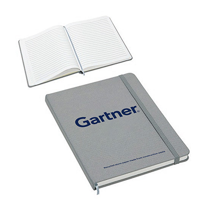 A 5 3/4" x 8 1/4" eco-friendly textured journal made with recycled stone paper, using construction waste. This bound journal has 80 sheets of very smooth, naturally water-resistant and tear-resistant paper, an elastic closure and ribbon bookmark.