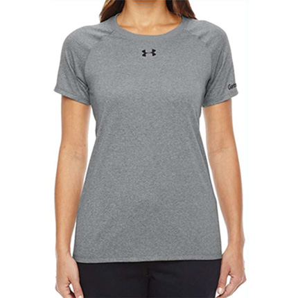 A ladies Under Armour locker tee shirt with an ultra-soft feel and a moisture wicking and anti-odor fabric. Is made from 100% polyester with a ladies loose fit and has the UA logo on the top front chest and back neck. The Gartner logo is printed on the left sleeve.