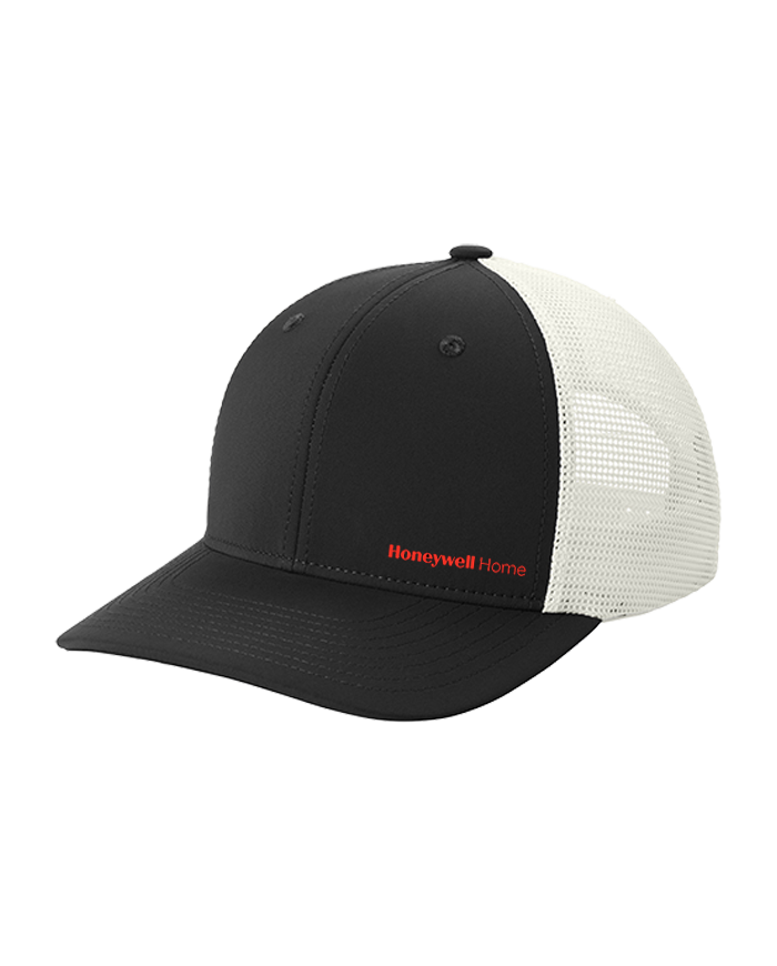 100% Poly mesh back panels, structured cap, curved bill, moisture-wicking sweatband, 7-position adjustable snapback closure. Honeywell Home logo.
